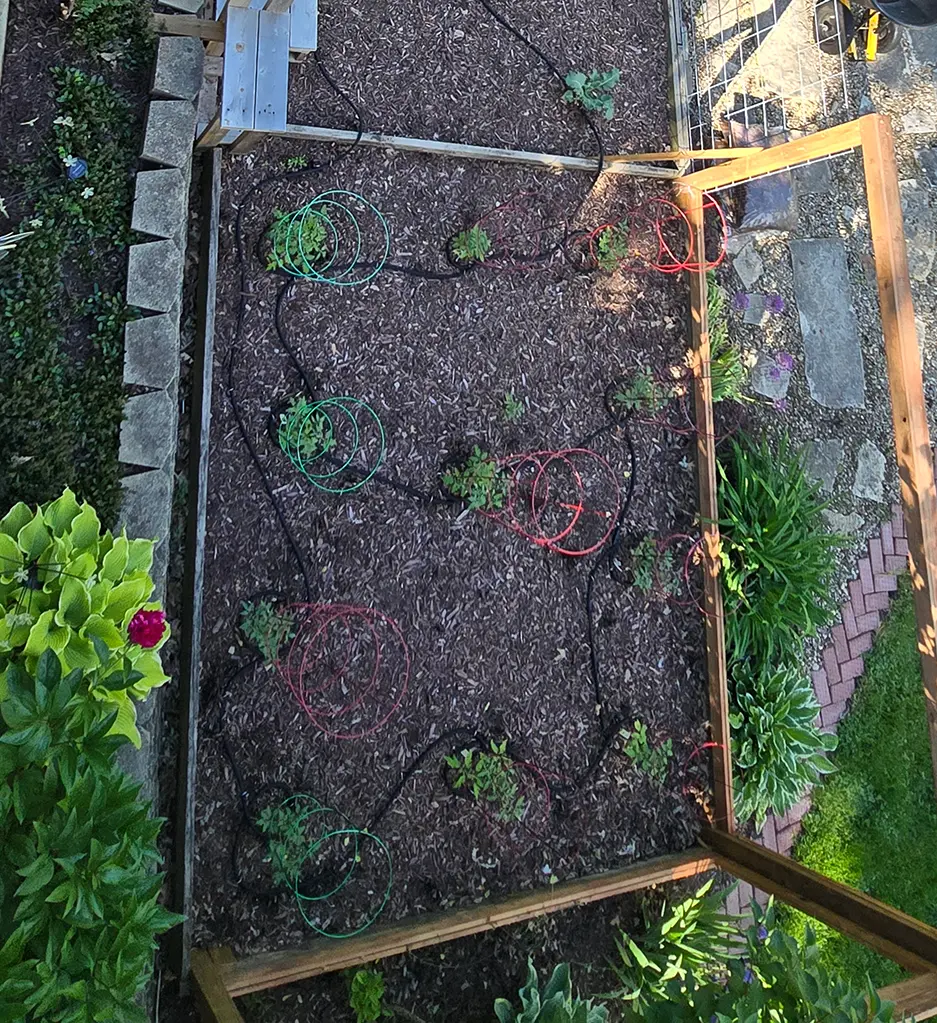 All of our garden beds here in Yorkville use drip irrigation systems that I’ve designed and installed myself — customized for each space and plant type. These systems deliver consistent moisture directly to the roots, keeping everything healthy even on the hottest days.